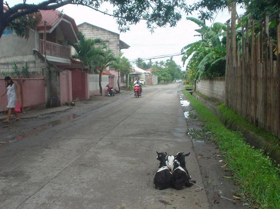 2匹が向こう向いて、寄り添っている。牛っぽい柄のやつが。