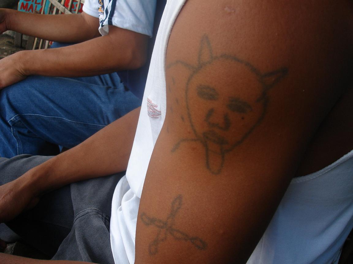前から気になってたその兄ちゃんの落書きタトゥーの写真を撮らせてもらっちゃった。